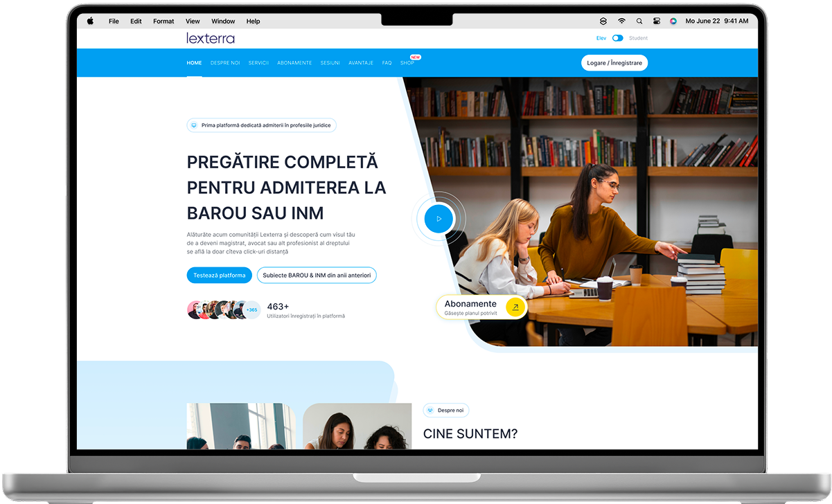Lexterra.ro is an educational platform for law students, built with advanced security, fast response times, and interactive testing and community features.