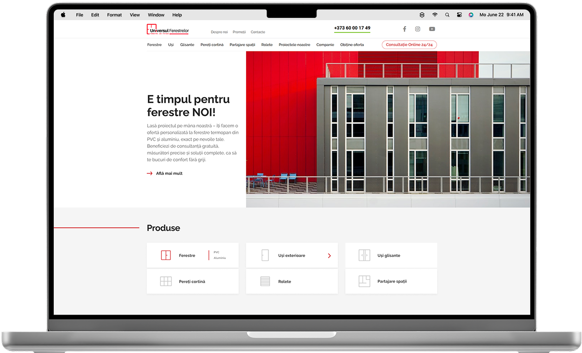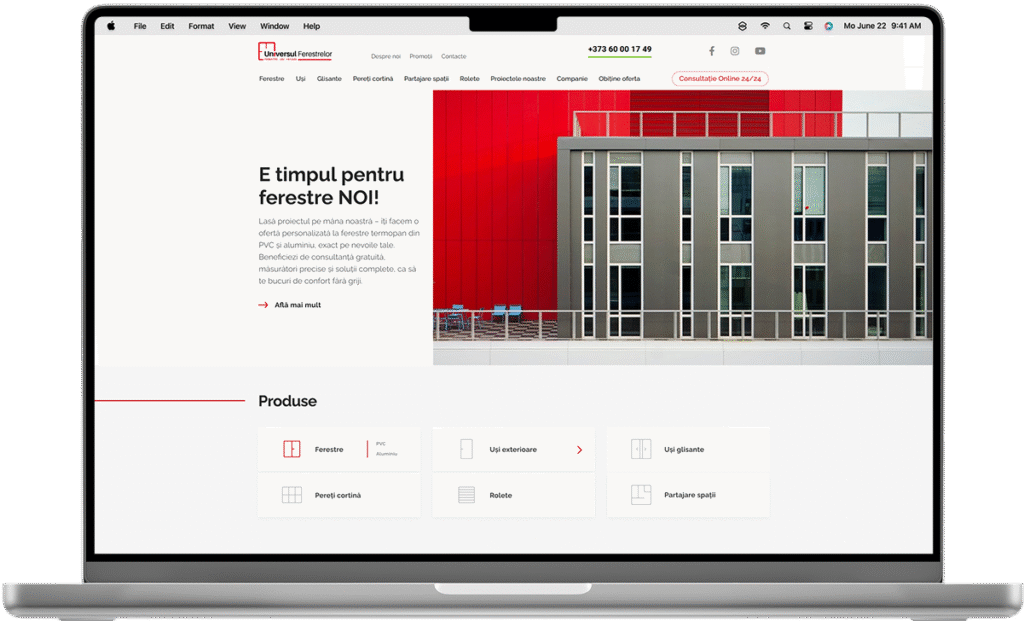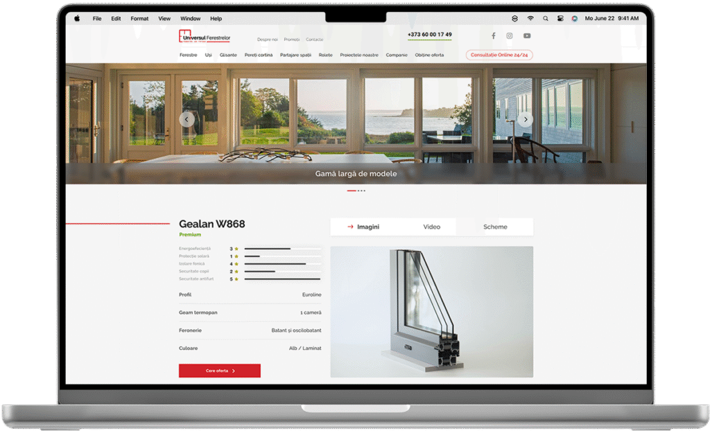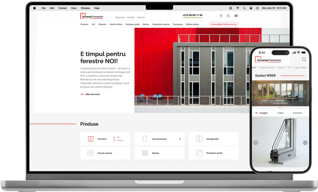 Universul-ferestrelor.md is an eCommerce platform designed to manage a complex catalog of home improvement products. Automatic integration with 1C ensures constant updates, while smart search, advanced filtering, and a clear information hierarchy allow users to browse quickly and easily find the products they need.