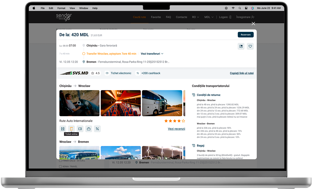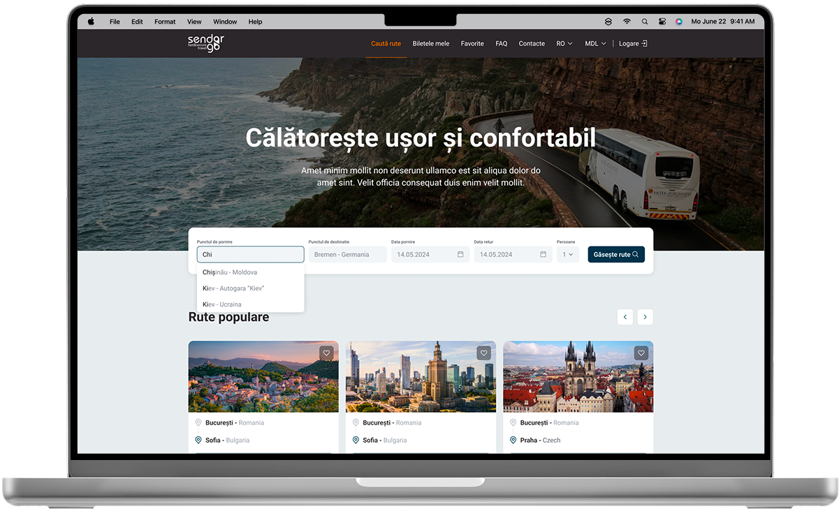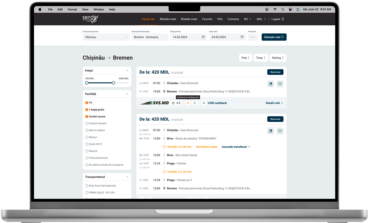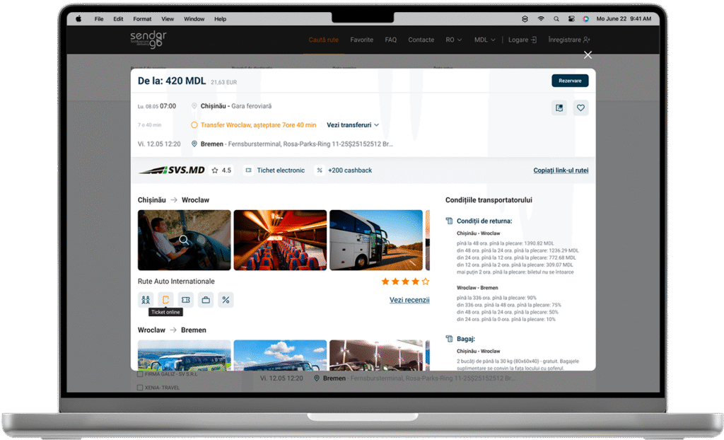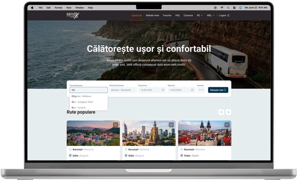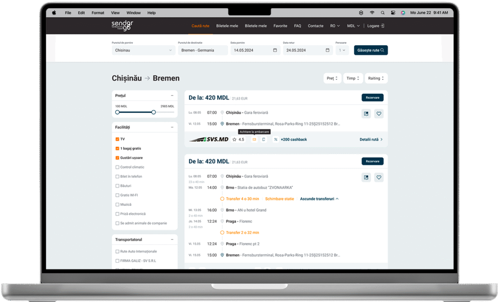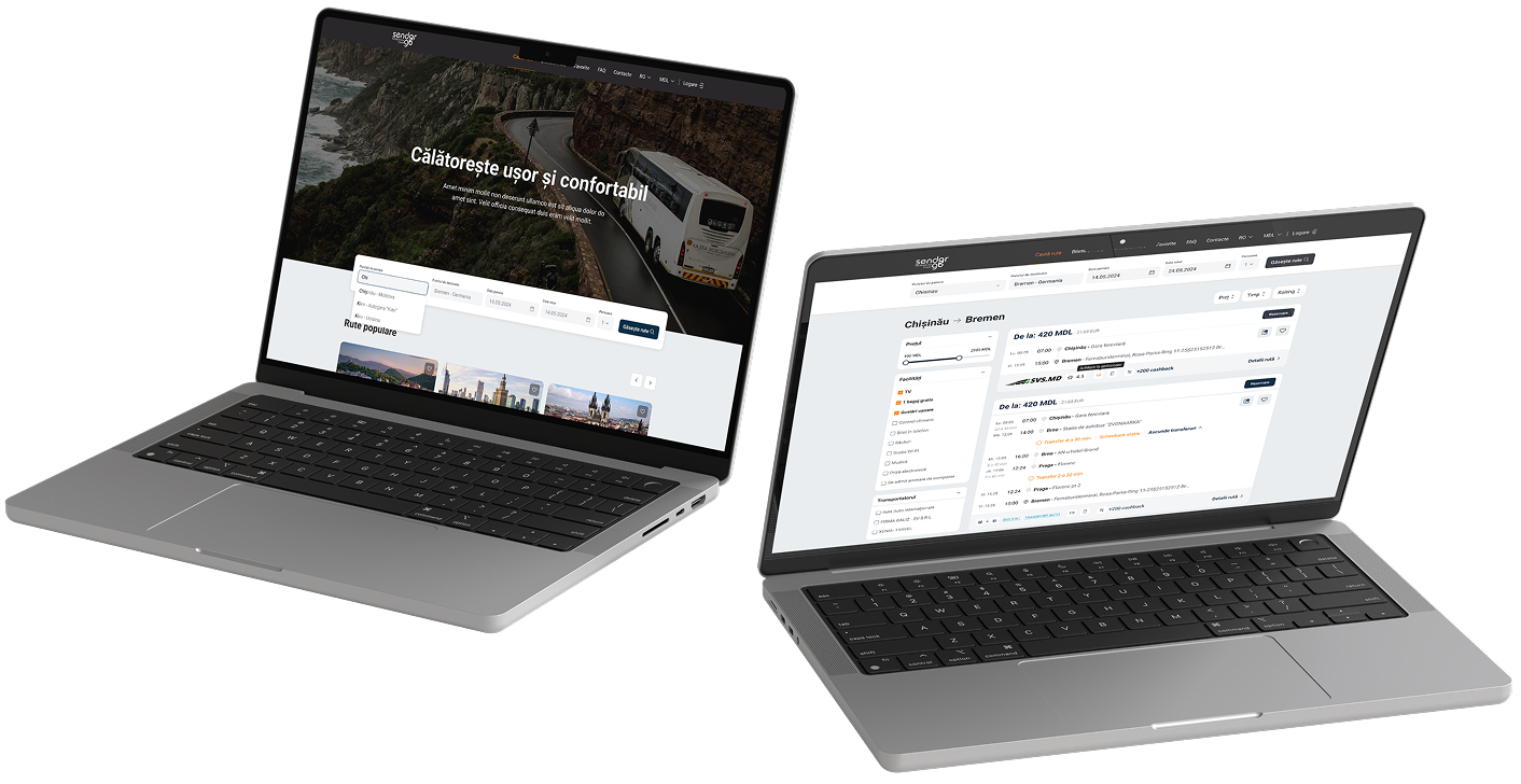 Sendorgo.md este o platformă pentru rezervarea biletelor de autobuz, construită cu formule avansate de calcul, integrare prin API și filtre inteligente pentru rute și prețuri.